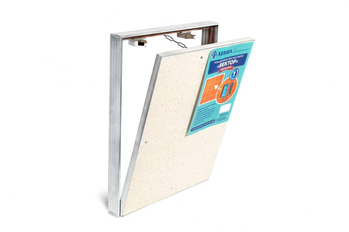 Вектор - это бюджетный эконом вариант люка под плитку Модерн или Модерн Мини, в отличие от которого люк имеет съемную дверцу и выполнен без фронтальной петли.