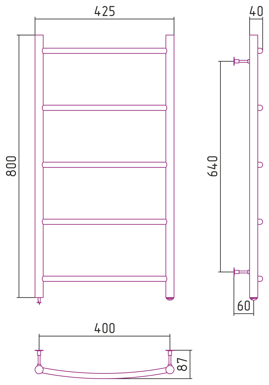 Полотенцесушитель электрический Стилье Формат №40 800x400